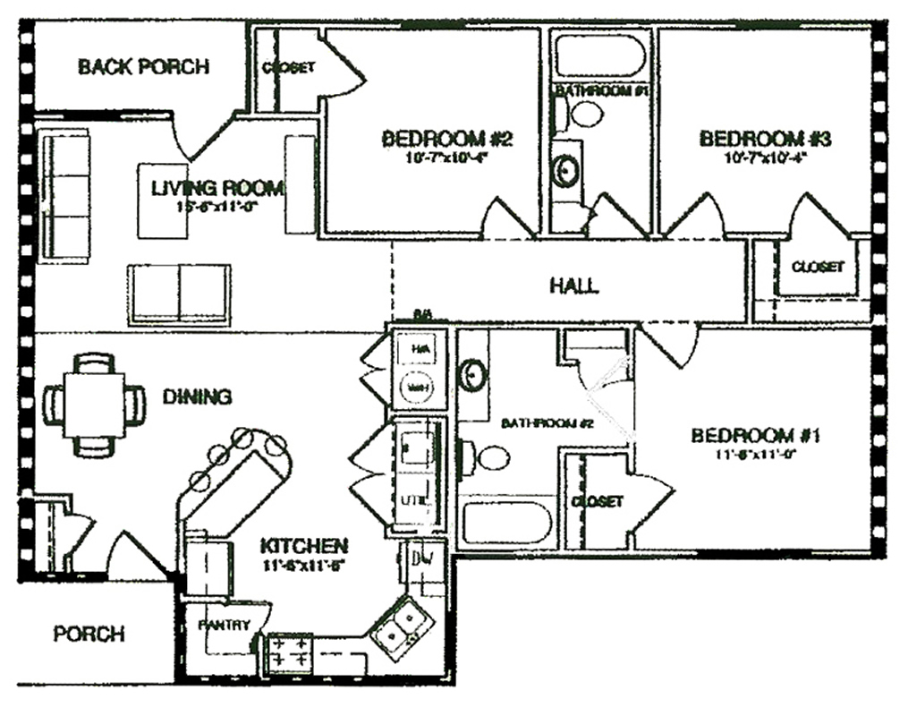 3 Bed | 2 Bath | 1,242 Sq. Ft.*